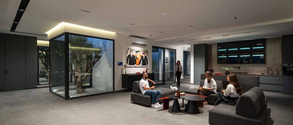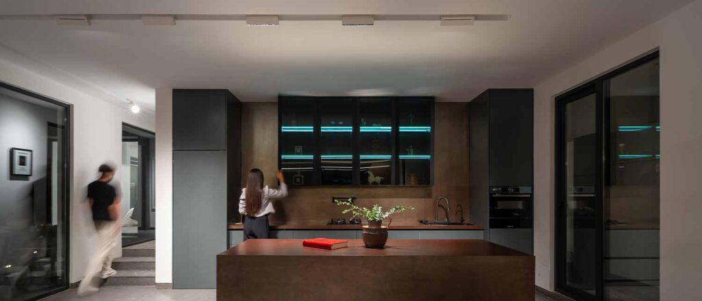 طراحی معماری این ویلا توسط استودیو طراحی و معماری کنج انجام شده و ما با درک دقیق نیازهای معمار و کارفرما، مشاوره تخصصی در زمینه انتخاب و چیدمان چراغ‌ها ارائه دادیم. در فرآیند طراحی نور، تلاش شد تا نورپردازی مکمل معماری فضا باشد و خطوط و بافت‌های طراحی‌شده توسط معمار را برجسته‌تر کند. نتیجه نهایی، ترکیبی هماهنگ از نور، فرم و فضاست که شخصیت منحصربه‌فرد ویلا را به‌خوبی به نمایش می‌گذارد.