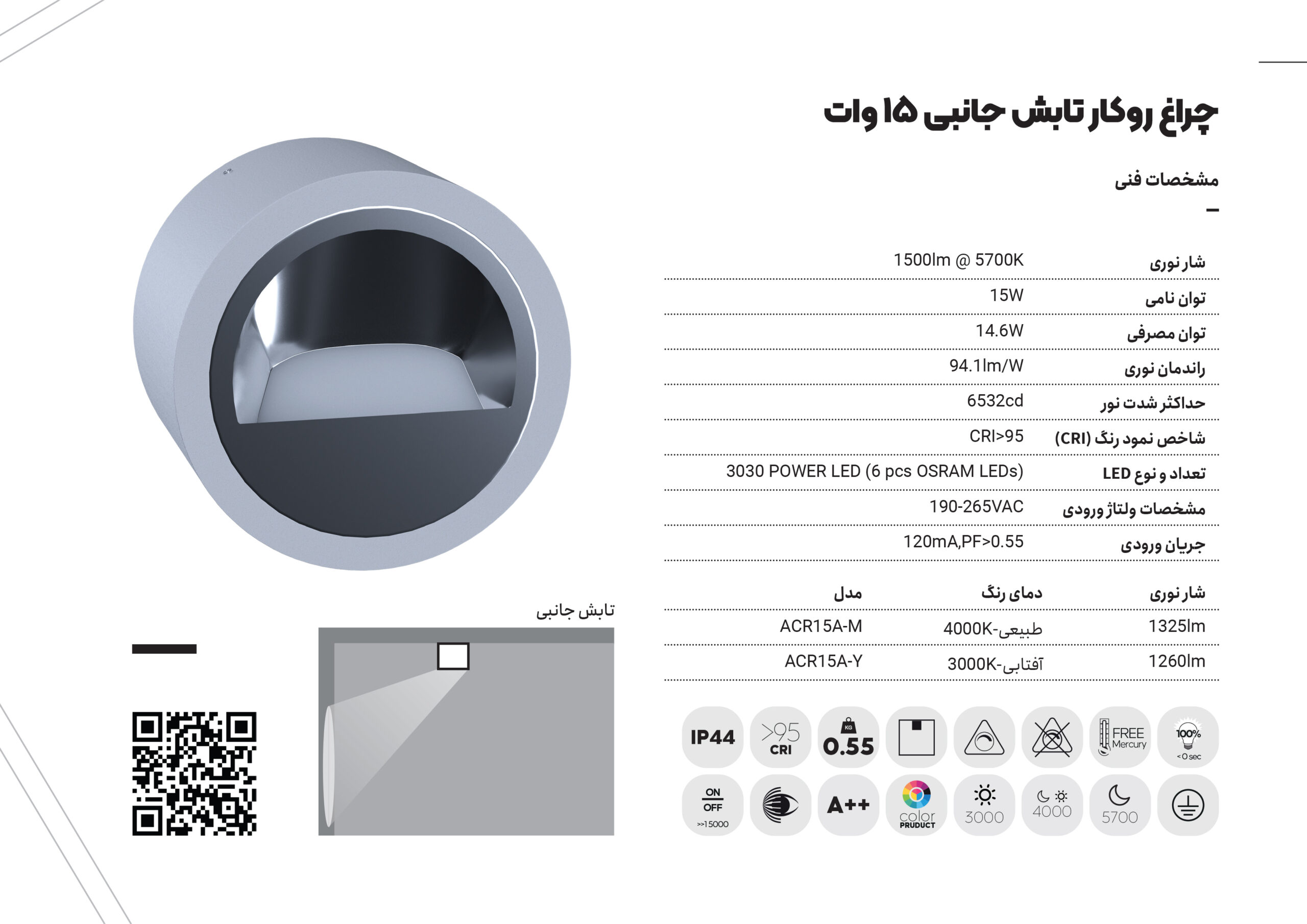 چراغ روکار تابش جانبی ۱۵ وات اکووات
