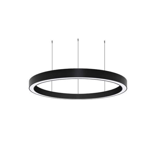 استفاده از دایره خطی در سقف به صورت آویز میتواند شما را از لوسترهای مختلف بی نیاز کند. چراغ خطی رینگی که در دایرههای کوچک و بزرگ با ابعاد سفارشی شما تولید میشود، یکی از بهترین چراغها برای استفاده در مرکز بخشهای مختلف نظیر مرکز پذیرایی یا لابی هتل و ساختمان است. علاوه بر این میتوانید با تنظیم چند چراغ رینگی بزرگ و کوچک در ترازهای ارتفاعی متفاوت، چراغهای خطی را به صورتی بچینید که از پایین به شکل زنجیرهای در هم تنیده شده دیده شوند.